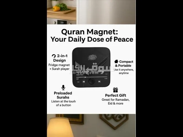 🕌✨ رفيقك اليومي لذكر الله وتلاوة القرآن ✨🕌 قرآن مغناطيسي محمول بتصميم عملي وأنيق، ليبقى كلام الله قريبًا منك في كل وقت 🤍🌟 مميزات المنتج:🧲 تصميم مغناطيسي محمول يثبت بسهولة على أي سطح معدني مثل الثلاجة، الخزانة أو السبورة، لتلاوة مريحة طوال اليوم.▶️ سهل الاستعمال للجميع زر واحد فقط للتشغيل/الإيقاف ⏯️ بدون Wi-Fi ❌ بدون تطبيقات ❌ مناسب لجميع الأعمار 👨👩👧👦🔋 بطارية قابلة للشحن USB-C ت...