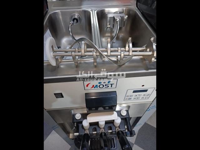 مواصافات الألة : سعة الخزان 28.3 لتر تخدم لحليب و الكريبوني ( لاڨلاص ) تحتوي علي ضاغطين ( دوبل كومبريسور ) واحد للتجميد و الاخر للتبريد صنع ايطالي ( compresseur dorin) قوة التجميد عالية يعمل بغاز R404-A و الاخر R134-A للعمل في درجات الحرارة العالية جدا اشكال جديدة للايسكريم حجم السيلاندر 3.3 ل * 2 = 6,6 لتر .يعني 6.6 لتر يتم توزيعها ( الايسكريم ) دون توقف 2 مضخات كهربائية ( دوبل مضخات هواء) في كل خزان يوجد فيه مضخات كه...